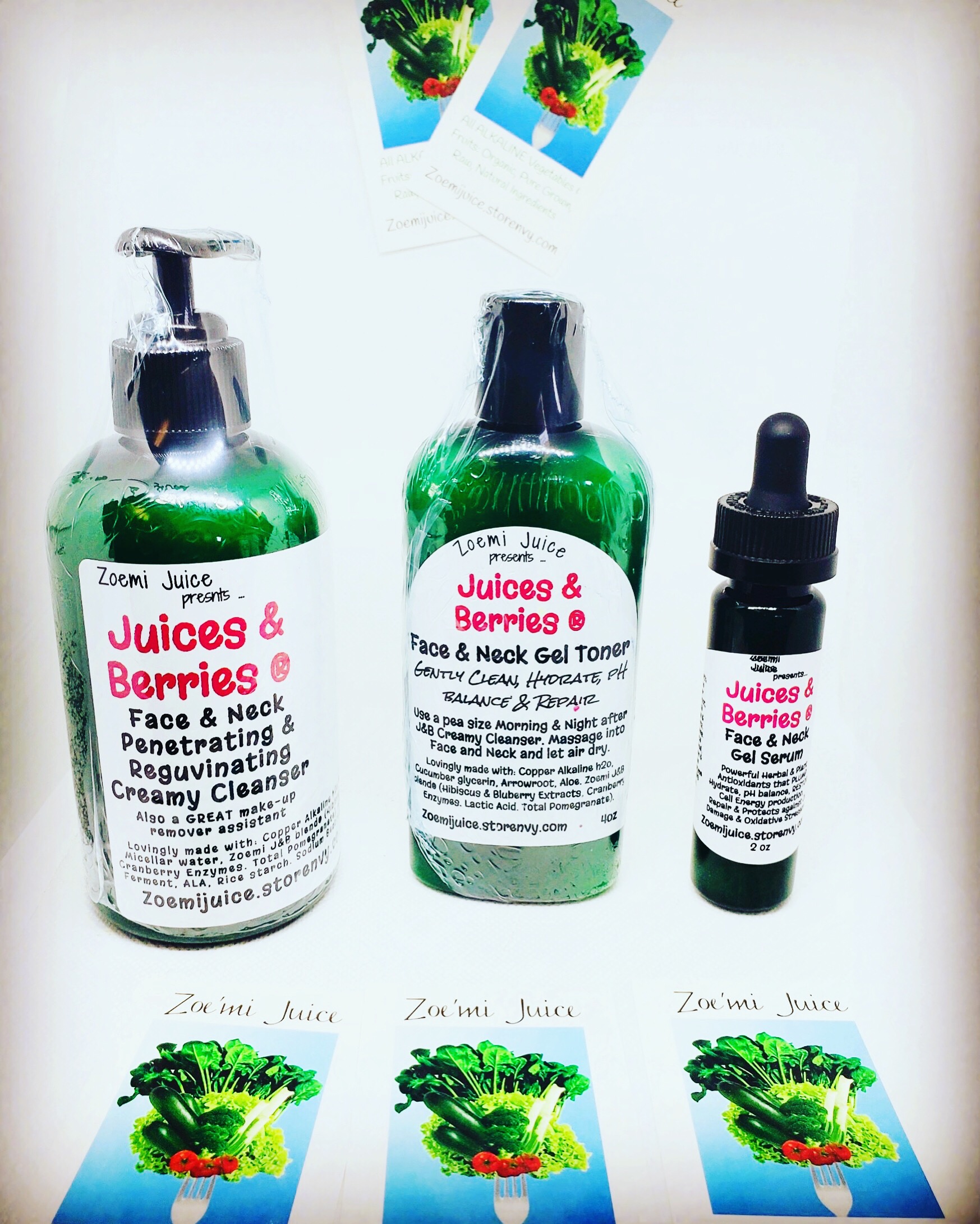 The Juices & Berries ® Hydration mature facial line is a game changer for the mature audience ( and anyone over 40 ... lol). The package is a 3 piece set which includes a face and neck Conditioning creamy cleanser, a Hydrating face and neck toner & face and neck gel serum for active hydrating & moisturizing.