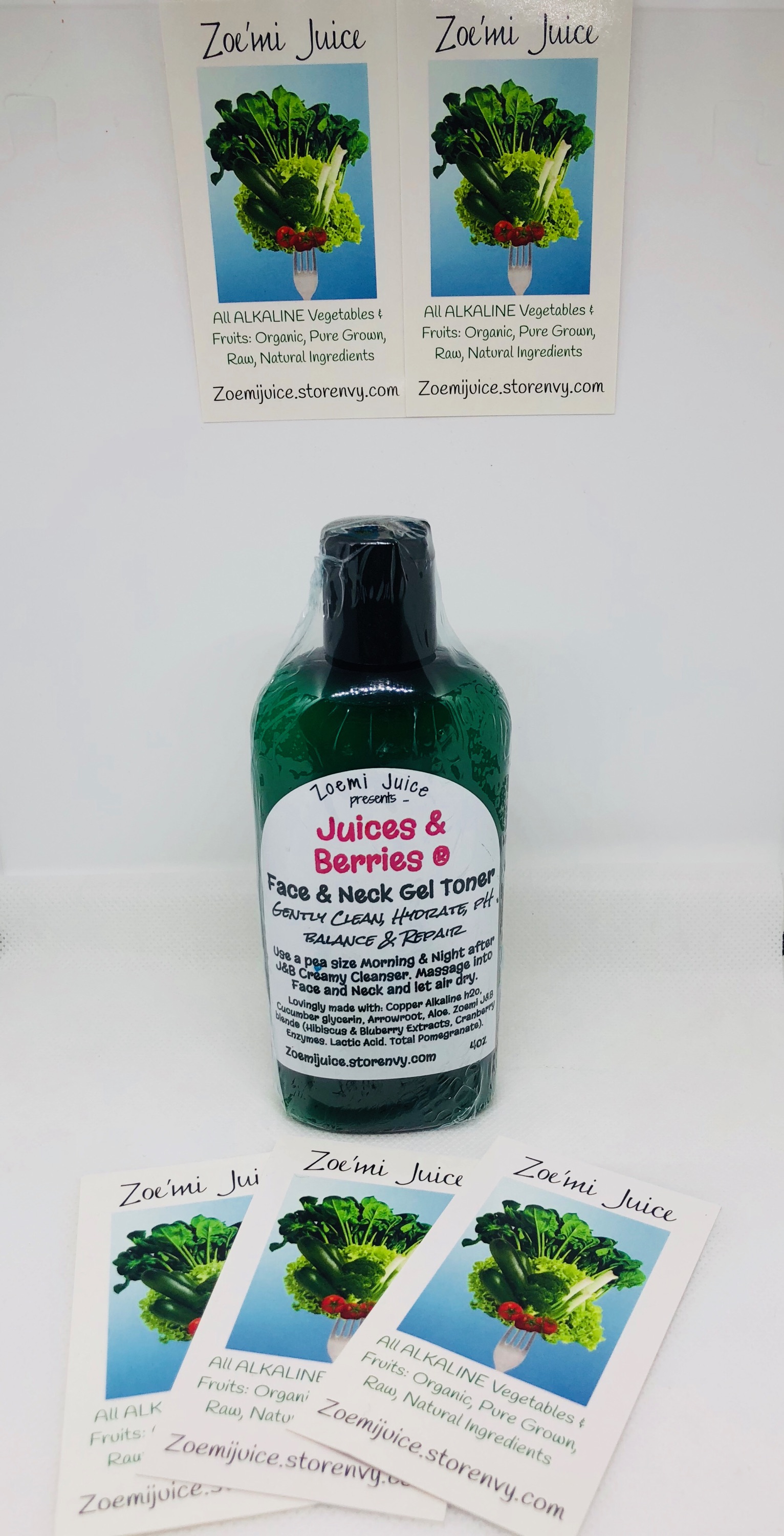 Zoemi presents... our PROVEN Juices & Berries ® Face & Neck Gel Toner,. Gently Clean, Hydrate, pH balance & Repair.